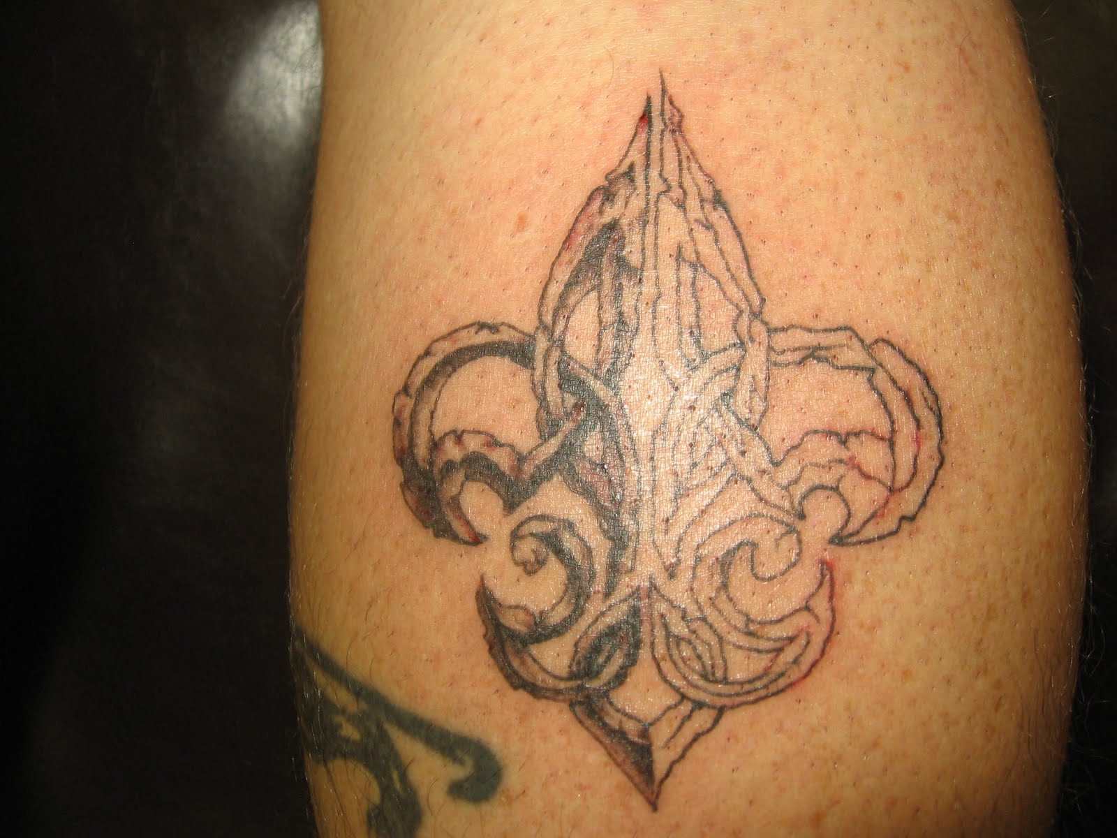 This client came back for a slight touch-up of his colorful design. Only a little of the blue didn't set right, so it was to be an easy touch-up. Then he told me he wanted to add new material to the design altogether! I love how the designs go together and I'm excited to work with him more in the future.